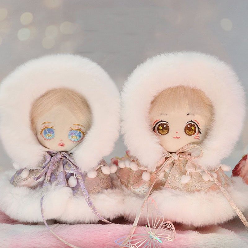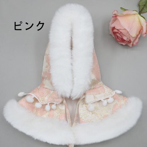 【20㎝用】3色展開 ボリューム ファー ポンチョ フラワー柄 ポンポン かわいい ぬい活 ぬい服 ぬいぐるみ 着せ替え