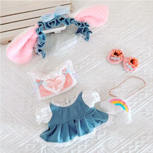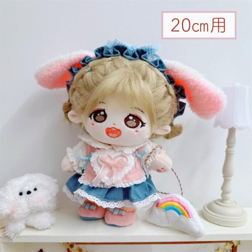 【20㎝用】5点セット ドレス うさ耳 レインボー バッグ セット服 ぬい服 着せ替え