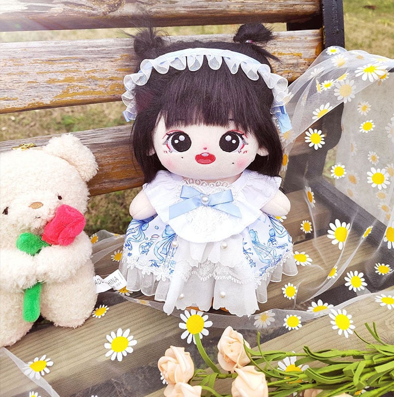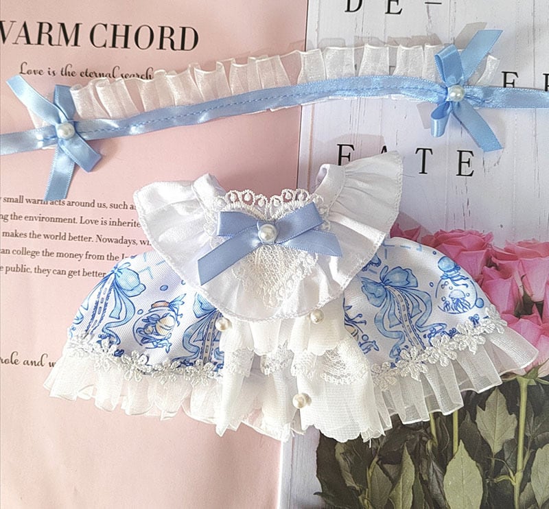 【20㎝用】2点セット メイド服 水色系統 ドレス リボン レース フリル セット服 ぬい服 着せ替え