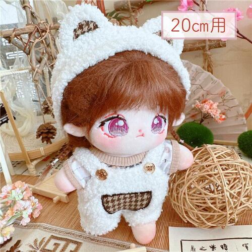 【20㎝用】2点セット くま耳 茶色系統 サロペット アイドル衣装 チェック柄 セット服 ぬい服 着せ替え